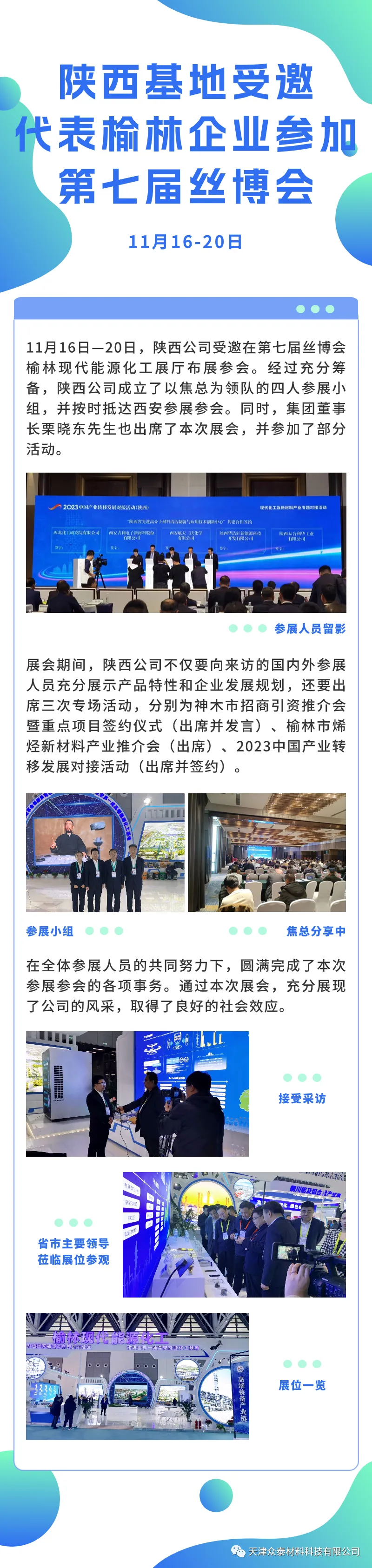 陜西公司受邀在第七屆絲博會(huì),榆林現(xiàn)代能源化工展廳布展參會(huì)。經(jīng)過充分籌備,陜西公司成立了以焦總為領(lǐng)隊(duì)的四人參展小組,并按時(shí)抵西安參加展會(huì)。同時(shí),集團(tuán)董事長(zhǎng)栗曉東先生也出席了本次展會(huì),并參加了部分活動(dòng)。